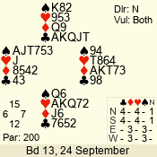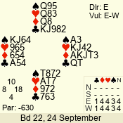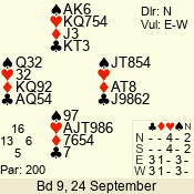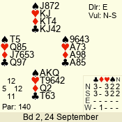| Con | Dc | Res | Score | Ld | Pairs | Rd | Tbl | | 3 N | E | -2 | 200 | 2 | 06 - 05 | 2 | 6 |