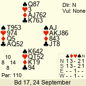 | Con | Dc | Res | Score | Ld | Pairs | Rd | Tbl | 2  | E | = | -110 | 4 | 01 - 08 | 2 | 1 |