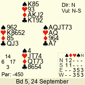 | Con | Dc | Res | Score | Ld | Pairs | Rd | Tbl | 4  | E | -3 | 150 | T | 05 - 05 | 1 | 5 |