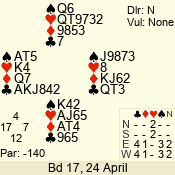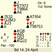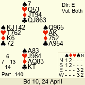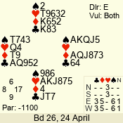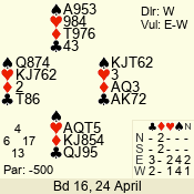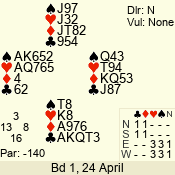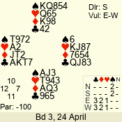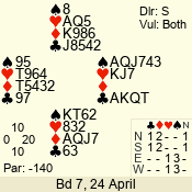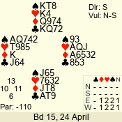 | 3 NT | S | +2 | 660 | 8 | 07 - 06 | 2 | 7 |
