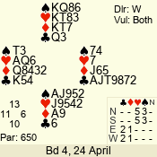 | Con | Dc | Res | Score | Ld | Pairs | Rd | Tbl | 4  | N | +1 | 650 | A | 06 - 04 | 3 | 6 |