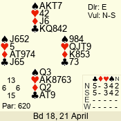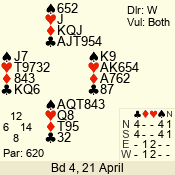 | Con | Dc | Res | Score | Ld | Pairs | Rd | Tbl | 4  | E | = | -620 | 4 | 07 - 04 | 3 | 2 |