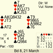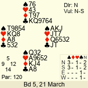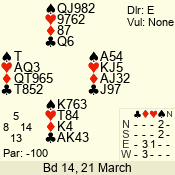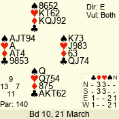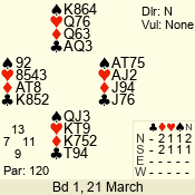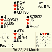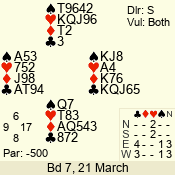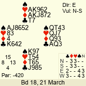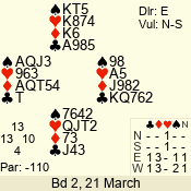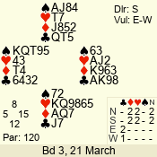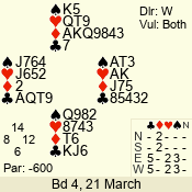| Con | Dc | Res | Score | Ld | Pairs | Rd | Tbl | 4  | S | = | 420 | T | 03 - 01 | 3 | 3 |