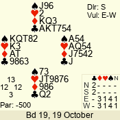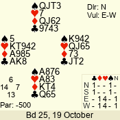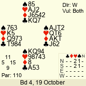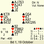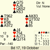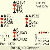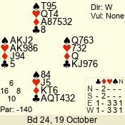 | 3 NT | W | +1 | -430 | 6 | 04 - 07 | 5 | 4 |