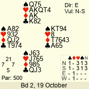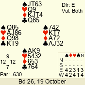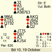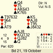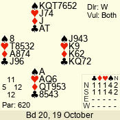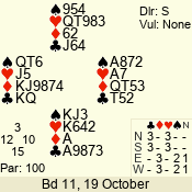 | 3 NT | S | +1 | 630 | 6 | 05 - 04 | 2 | 5 |