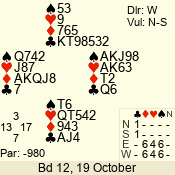 | 3 NT | S | +1 | 630 | 7 | 06 - 06 | 1 | 6 |
