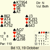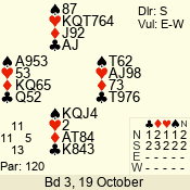 | 3 NT | W | +2 | -460 | 6 | 01 - 07 | 2 | 1 |