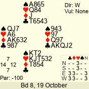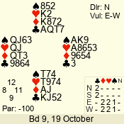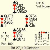 | 3 NT | W | +2 | -460 | 8 | 04 - 06 | 6 | 4 |