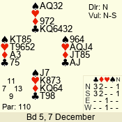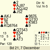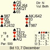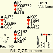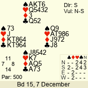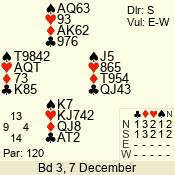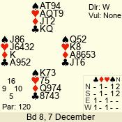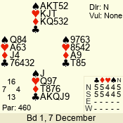 | Con | Dc | Res | Score | Ld | Pairs | Rd | Tbl | | 3 N | S | +2 | 460 | 4 | 04 - 07 | 6 | 4 |