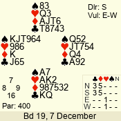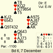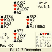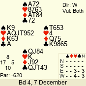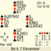 | Con | Dc | Res | Score | Ld | Pairs | Rd | Tbl | | 3 N | N | = | 400 | A | 02 - 04 | 7 | 2 |