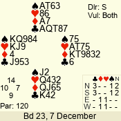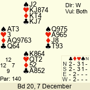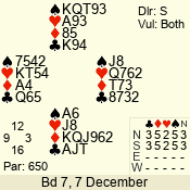 | Con | Dc | Res | Score | Ld | Pairs | Rd | Tbl | | 3 N | S | +3 | 690 | 2 | 07 - 04 | 4 | 7 |