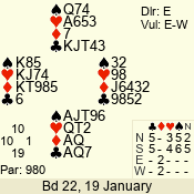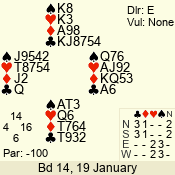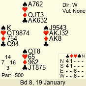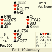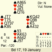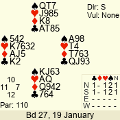 | Con | Dc | Res | Score | Ld | Pairs | Rd | Tbl | | 1 N | S | +1 | 120 | 3 | 10 - 08 | 8 | 3 |