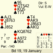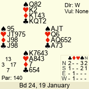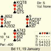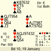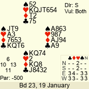 | Con | Dc | Res | Score | Ld | Pairs | Rd | Tbl | | 3 N | S | +3 | 490 | T | 09 - 07 | 4 | 5 |