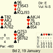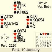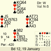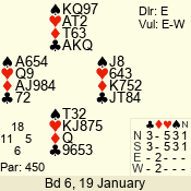 | Con | Dc | Res | Score | Ld | Pairs | Rd | Tbl | | 2 N | S | = | 120 | 3 | 03 - 09 | 8 | 2 |