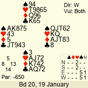 | Con | Dc | Res | Score | Ld | Pairs | Rd | Tbl | 5  | S | +1 | 680 | Q | 09 - 08 | 1 | 4 |