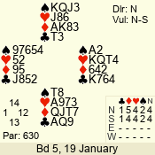 | Con | Dc | Res | Score | Ld | Pairs | Rd | Tbl | | 3 N | S | +1 | 630 | 2 | 07 - 02 | 5 | 1 |