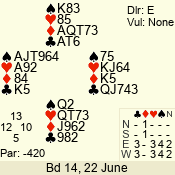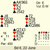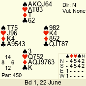| Con | Dc | Res | Score | Ld | Pairs | Rd | Tbl | 4  | S | +1 | 450 | A | 04 - 06 | 5 | 4 |