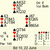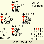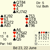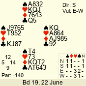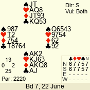 | Con | Dc | Res | Score | Ld | Pairs | Rd | Tbl | | 7 N | S | = | 2220 | 6 | 03 - 04 | 6 | 3 |