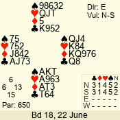 | Con | Dc | Res | Score | Ld | Pairs | Rd | Tbl | 4  | S | +1 | 650 | A | 05 - 02 | 4 | 5 |