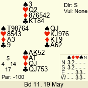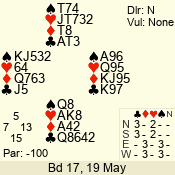 | 3 NT | S | +2 | 460 | 5 | 05 - 03 | 3 | 5 |