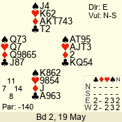 | Con | Dc | Res | Score | Ld | Pairs | Rd | Tbl | 2  | S | +1 | 140 | 4 | 03 - 01 | 3 | 3 |