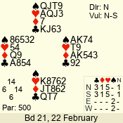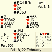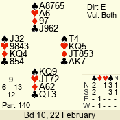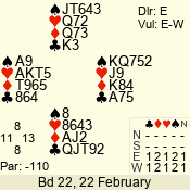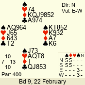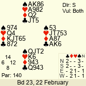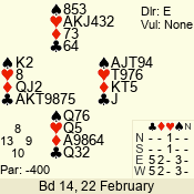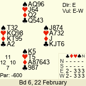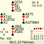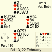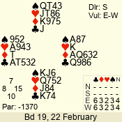| 3 NT | E | +1 | -630 | 7 | 02 - 06 | 3 | 2 |