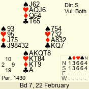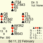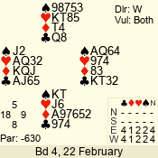 | 3 NT | S | +1 | 630 | 4 | 04 - 01 | 4 | 4 |