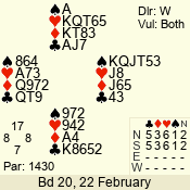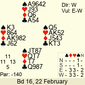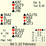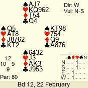 | 3 NT | W | +1 | -430 | 3 | 03 - 05 | 5 | 3 |