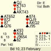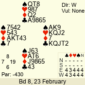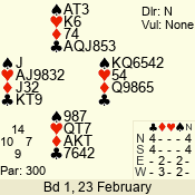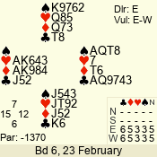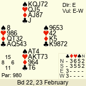 | 3 NT | E | +1 | -430 | 3 | 02 - 06 | 5 | 2 |