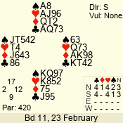| 3 NT | E | +1 | -430 | 5 | 01 - 07 | 3 | 1 |
