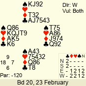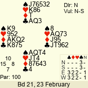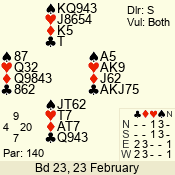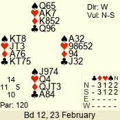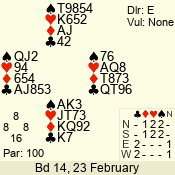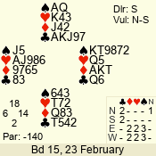 | 3 NT | S | +2 | 660 | 4 | 02 - 02 | 1 | 2 |