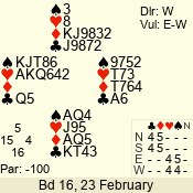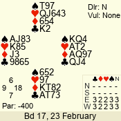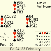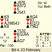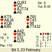 | 3 NT | W | +3 | -690 | 2 | 02 - 02 | 1 | 2 |