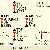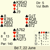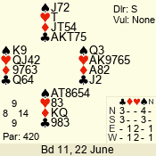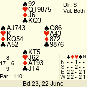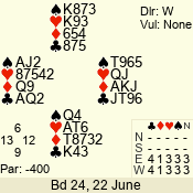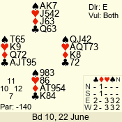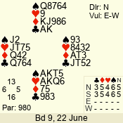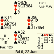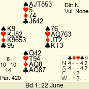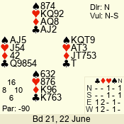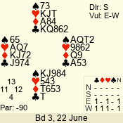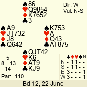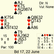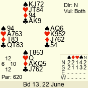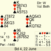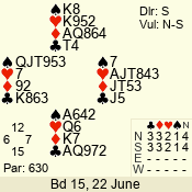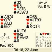 | 3 NT | S | +1 | 630 | 9 | 01 - 04 | 4 | 1 |