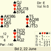 | 3 NT | S | -2 | -200 | 9 | 02 - 06 | 3 | 2 |