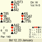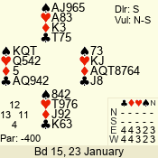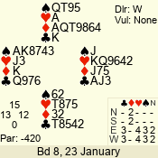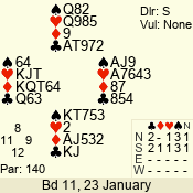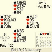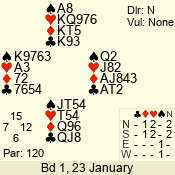 | Con | Dc | Res | Score | Ld | Pairs | Rd | Tbl | | 1 N | N | +1 | 120 | 4 | 04 - 04 | 1 | 4 |