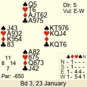 | Con | Dc | Res | Score | Ld | Pairs | Rd | Tbl | | 3 N | W | -1 | 100 | 3 | 03 - 03 | 1 | 3 |