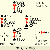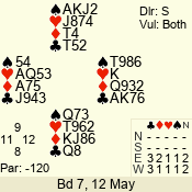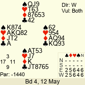 | Con | Dc | Res | Score | Ld | Pairs | Rd | Tbl | 4  | S | = | 420 | Q | 03 - 05 | 4 | 3 |