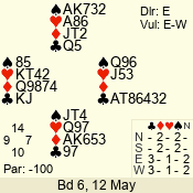 | 3 NT | E | +1 | -430 | 4 | 01 - 01 | 1 | 1 |
