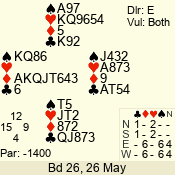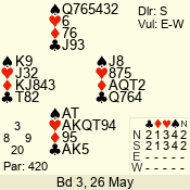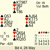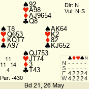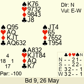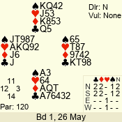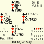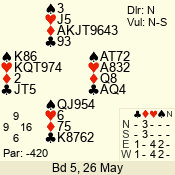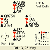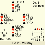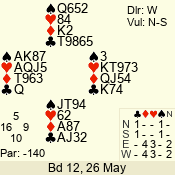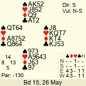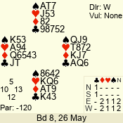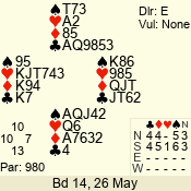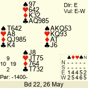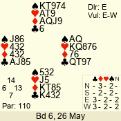 | 3 NT | E | +2 | -460 | 4 | 03 - 05 | 13 | 2 |