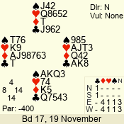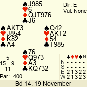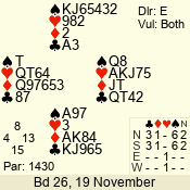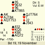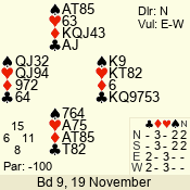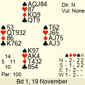 | Con | Dc | Res | Score | Ld | Pairs | Rd | Tbl | | 1 N | S | -1 | -50 | T | 04 - 01 | 4 | 4 |