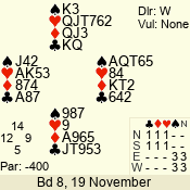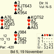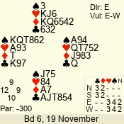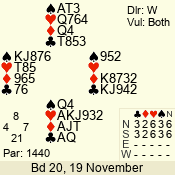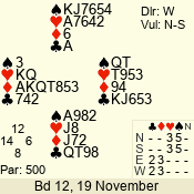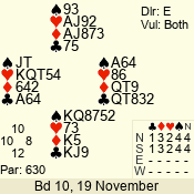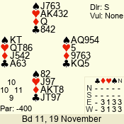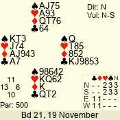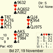 | Con | Dc | Res | Score | Ld | Pairs | Rd | Tbl | | 3 N | S | = | 600 | 2 | 04 - 07 | 5 | 4 |