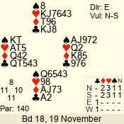 | Con | Dc | Res | Score | Ld | Pairs | Rd | Tbl | | 1 N | N | +3 | 180 | K | 02 - 02 | 1 | 2 |