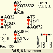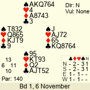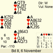 | 3 NT | W | +1 | -430 | 8 | 05 - 05 | 1 | 5 |