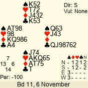 | 3 NT | S | +2 | 460 | Q | 05 - 04 | 2 | 5 |