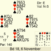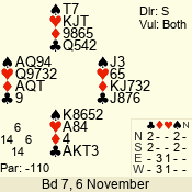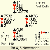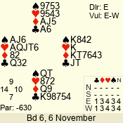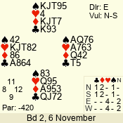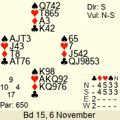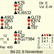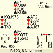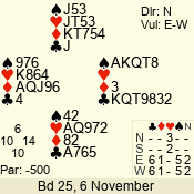 | 3 NT | W | +2 | -460 | 6 | 04 - 05 | 5 | 4 |