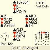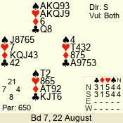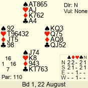 | 3 NT | S | +1 | 630 | K | 01 - 07 | 2 | 1 |