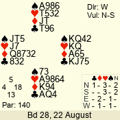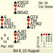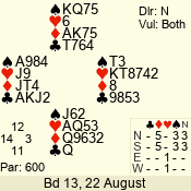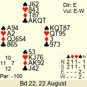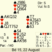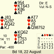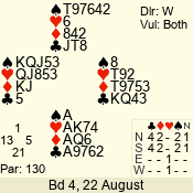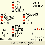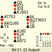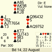 | 3 NT | W | +1 | -430 | 3 | 01 - 04 | 5 | 1 |