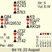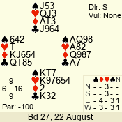 | 3 NT | W | +3 | -690 | 5 | 05 - 05 | 1 | 5 |