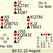 | Con | Dc | Res | Score | Ld | Pairs | Rd | Tbl | 4  | S | +1 | 650 | A | 01 - 03 | 6 | 1 |