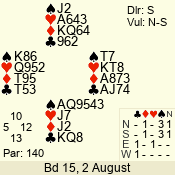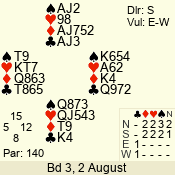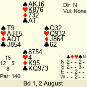 | Con | Dc | Res | Score | Ld | Pairs | Rd | Tbl | 2  | S | +1 | 140 | A | 01 - 01 | 1 | 1 |
